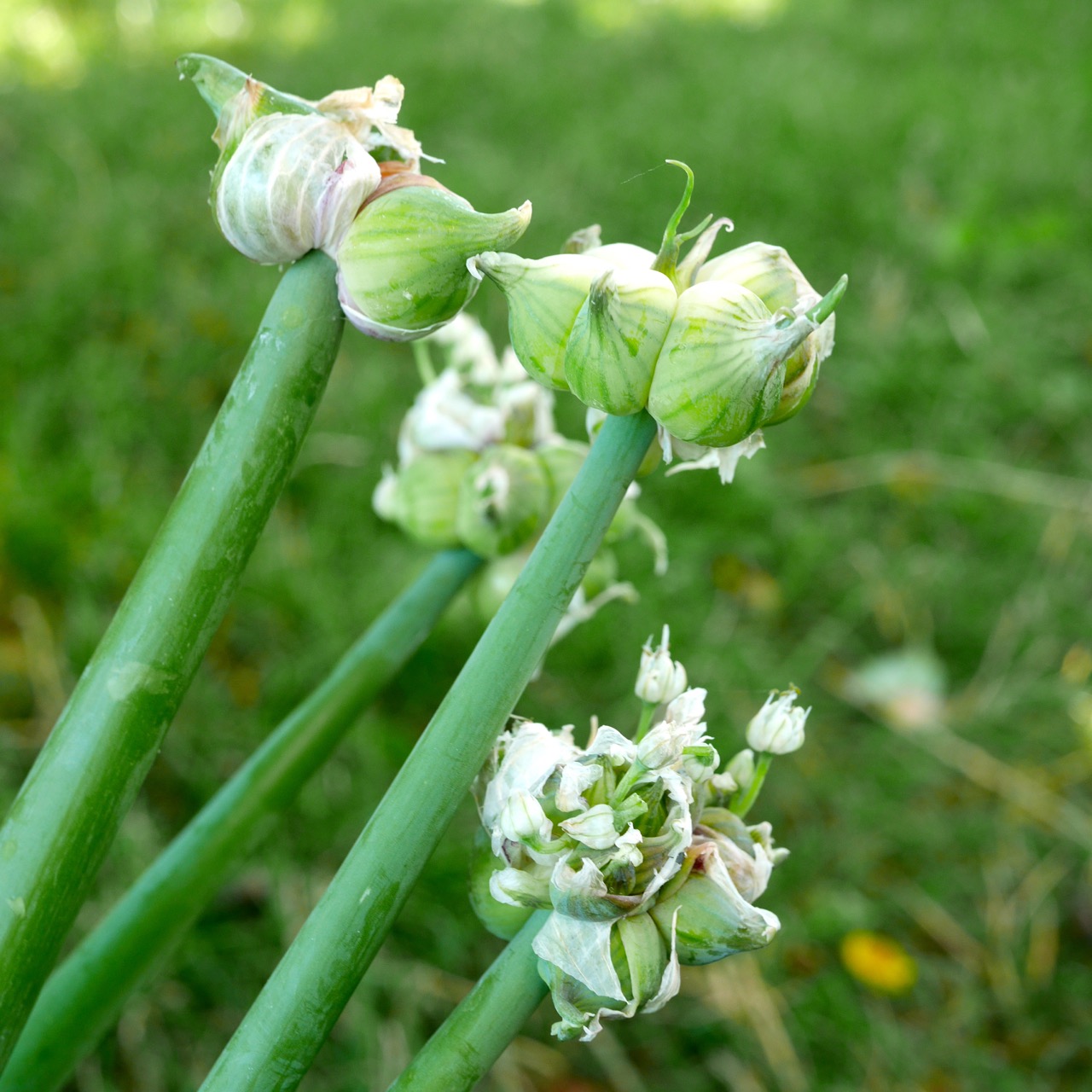 Grâce à un gentil voisin des parents de Thierry, j'ai récupéré des bulbilles d'oignons rocamboles :