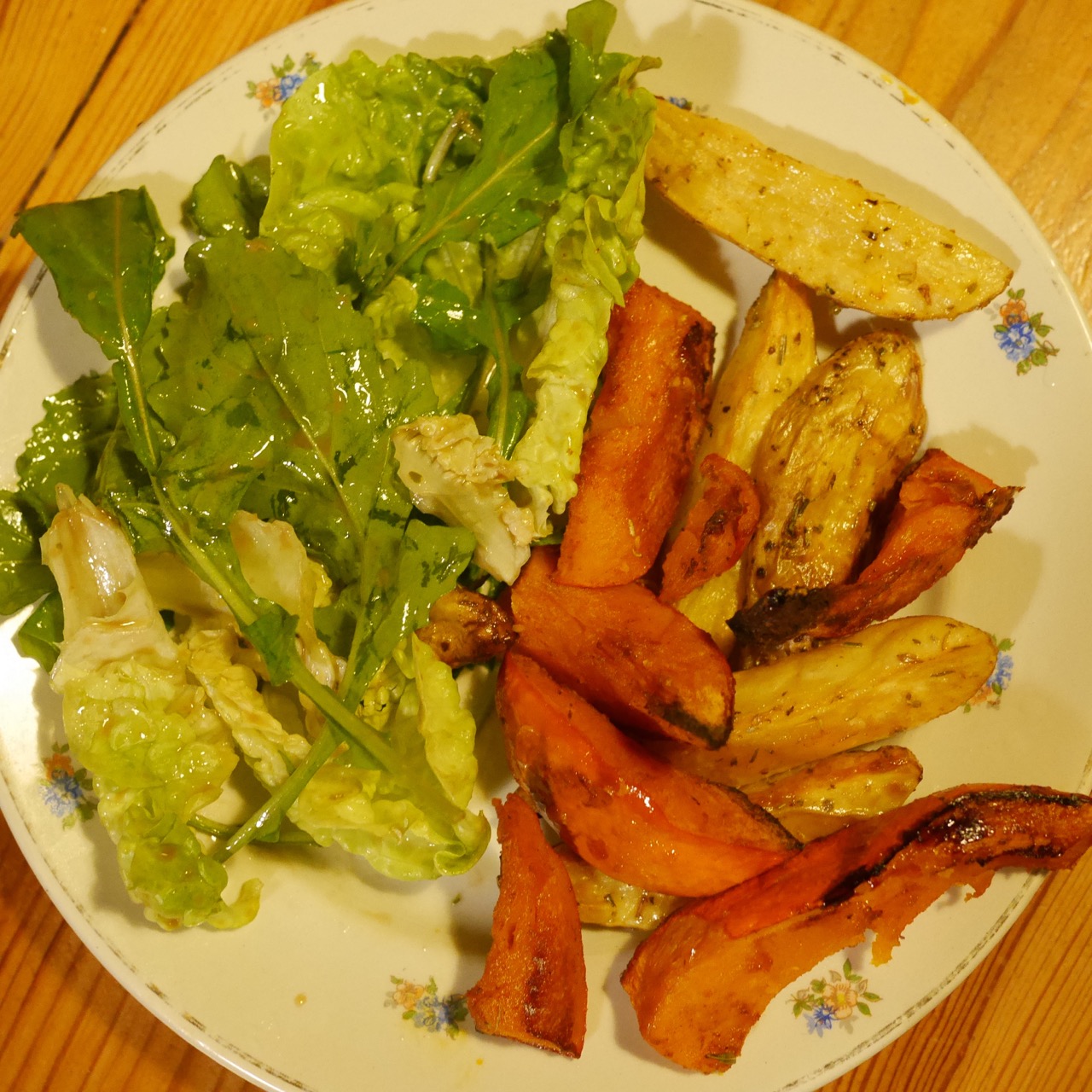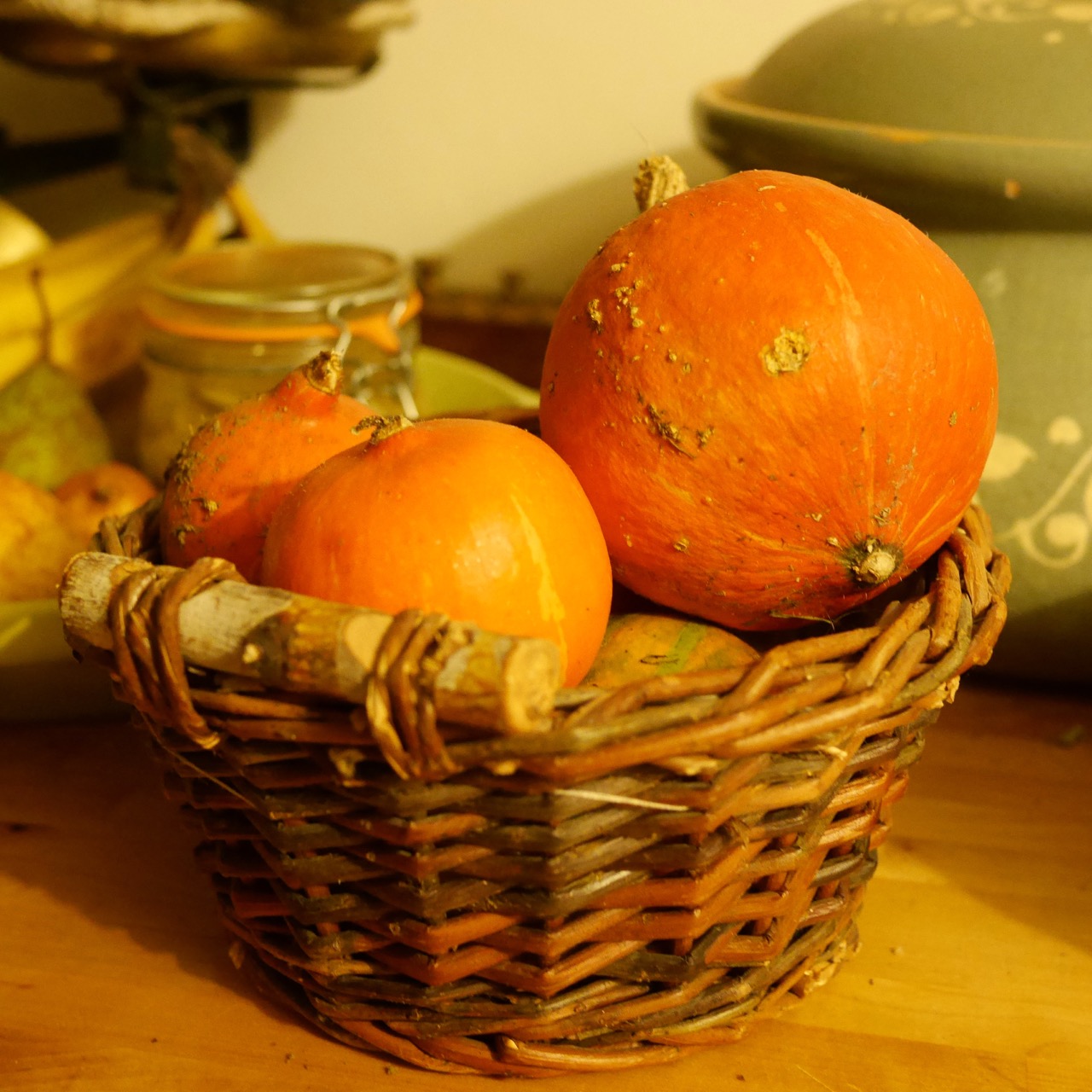 A part la sucrine, qu'on a achetée (en sachet, en plus, il n'y avait plus que ça...), tout provient du jardin. J'ai semé la roquette mi-septembre, et ça fait déjà plusieurs fois qu'on en mange (simplement mélangée à des tortellini et du fromage rapé, par exemple, un délice !). Quant au potimarron, il vient du seul pied qui était vraiment beau et a bien donné (et il était délicieux, en plus !). C'est un pied qui est venu tout seul. Ceux que j'ai semés, choyés, bichonnés, sont restés tout malingres et ont fait des mini-potimarrons... Je vais garder précieusement les pépins, et l'année prochaine je vais tenter de les jeter à droite à gauche, j'aurai peut-être plus de succès qu'avec mes godets.